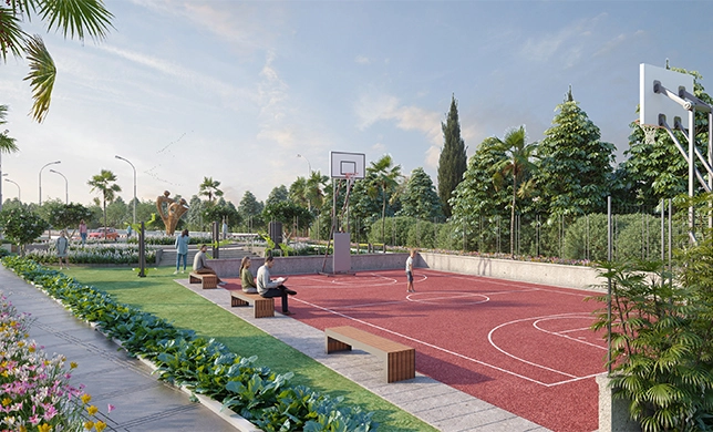 Landscaped green space with plantation for better experience.